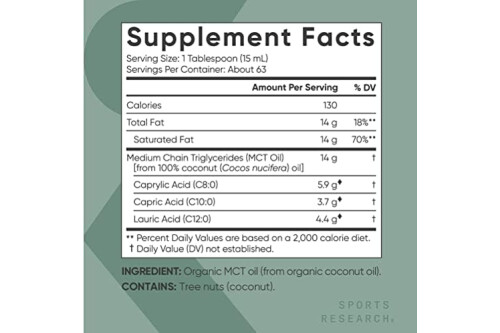 BRAIN & BODY FUEL: Sports Research MCT Oil is packed with c8, c10 & c12 fatty acids that may help keep the body in a state of ketosis (when your body uses fat as its main fuel source) while providing valuable brain-boosting energy support*