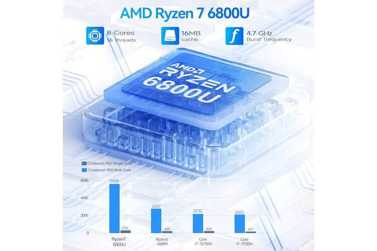 【Powerful CPU AMD Ryzen 7 6800U】Beelink SER5 MAX Mini PC powered with AMD Ryzen 7 6800U(8Core 16 Threads, Up to 4.7GHz, L2 4MB L3 16MB Cache), built-in AMD Radeon 12 Cores Graphics 2200 MHz. It handles heavy computing tasks smoothly, multitasks better, and provides you with excellent performance. Which can be widely used for office(PPT, AI, PS, PR) and home(video, music and web content)