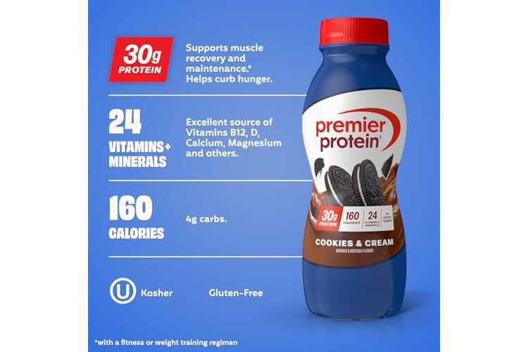 Premier Protein Shake, Cookies & Cream, 30g Protein, No Added Sugar, 24 Vitamins & Minerals to Support Immune Health, 11.5 fl oz, 12 Pack