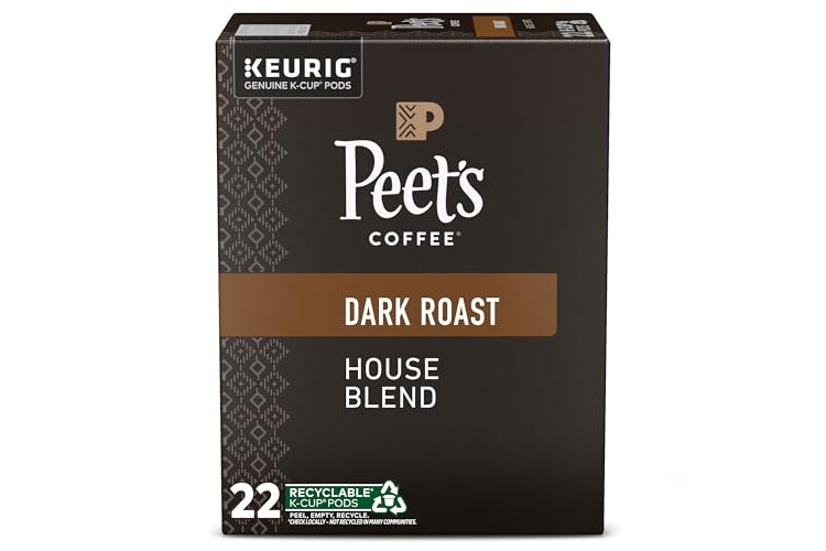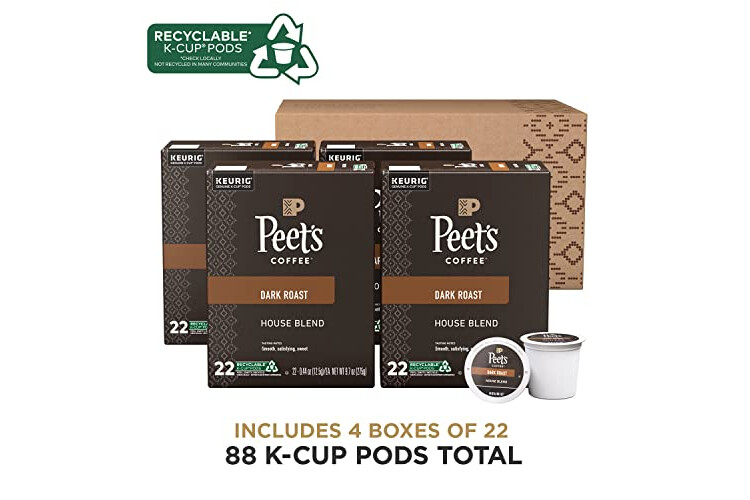 Peet's Coffee, Dark Roast Keurig K-Cup Pods - House Blend 88 Count (4 Boxes of 22 Pods)