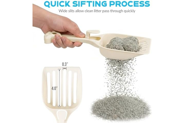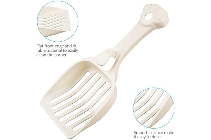 Great Litter Scoop: This cat litter scoop has wide slits that just need a gentle shake to sift litter clump. Flat front edge makes it easy for you to clean the corner. It's a good pine pellet litter scoop for our cat owner