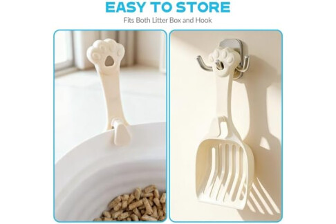 Space Saving and Cute: The hang hole and hook are designed to save space. You can hang the litter sifter scoop on a litter pan or a hanger.