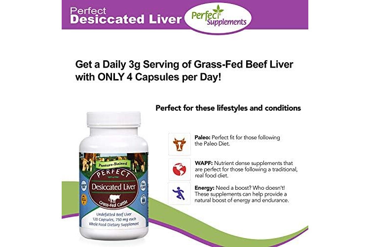 Perfect Supplements – Perfect Desiccated Liver – 120 Capsules – Undefatted Beef Liver – Natural Source of Protein, Iron, Vitamins A & B – 3 Pack