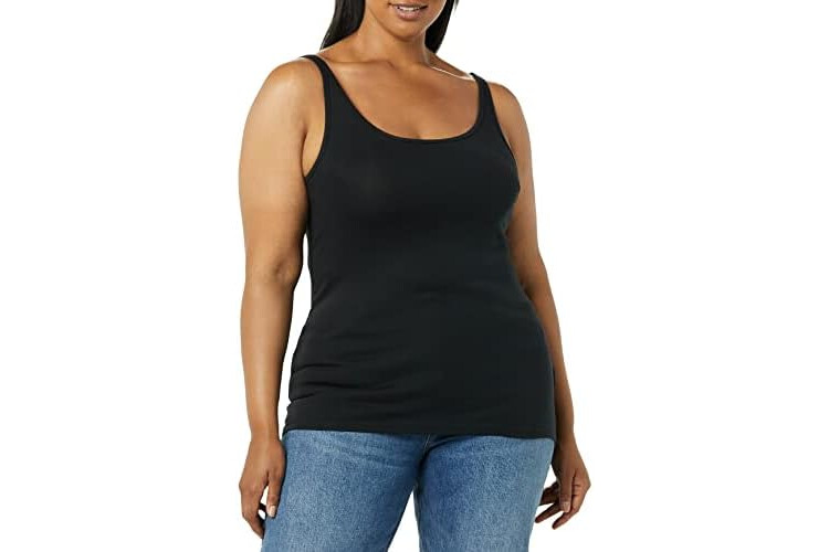 Amazon Essentials Women's 2-Pack Slim-fit Thin Strap Tank Shirt, -Black/Light Sage Green, Medium
