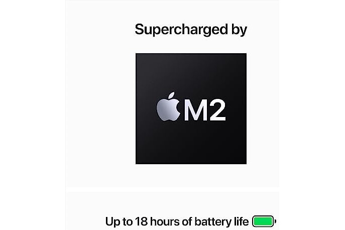UP TO 18 HOURS OF BATTERY LIFE — Go all day with the power-efficient performance of the Apple M2 chip. (Battery life varies by use and configuration. See apple.com/batteries for more information.)