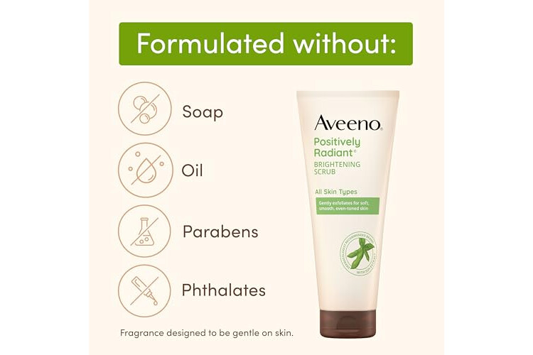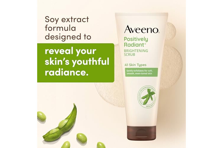 Aveeno Positively Radiant Brightening Face Scrub & Exfoliating Daily Face Wash, Moisture-Rich Soy Extract, Oil-Free, Soap-Free, Hypoallergenic, Non-Comedogenic, Improves Tone & Texture, 7 oz