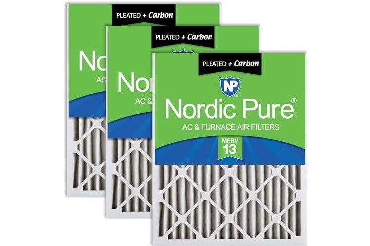 Nordic Pure 16x20x2 (15 1/2 x 19 1/2 x 1 3/4) Pleated Air Filters MERV 13 Plus Carbon 3 Pack