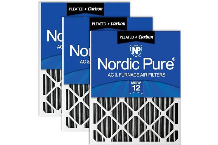 Nordic Pure 16x20x2 (15 1/2 x 19 1/2 x 1 3/4) Furnace Air Filters MERV 12 Pleated Plus Carbon 3 Pack