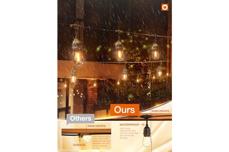 Weatherproof & Heavy-Duty Construction : These ETL-listed, commercial-grade string lights are built for year-round use, featuring a dual parallel wiring structure that enhances flexibility and durability. The robust insulation shields against extreme weather—sun, rain, wind, snow, and dampness—ensuring reliable indoor and outdoor lighting performance.
