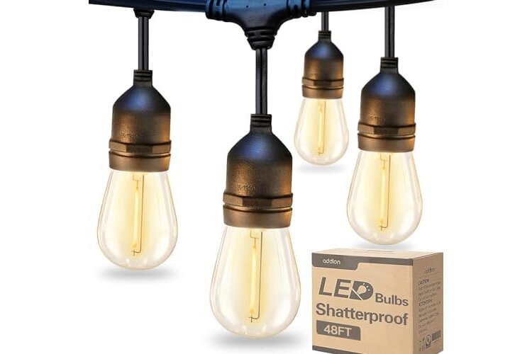 addlon LED Outdoor String Lights 48FT with Edison Vintage Shatterproof Bulbs and Commercial Grade Weatherproof Strand - ETL Listed Decorative Lights for Patio Garden