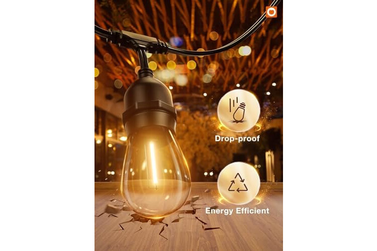Breathtaking Italian Bistro Style Lighting : Each strand features 15 vintage-inspired hanging sockets with shatterproof E17 LED edison bulbs, spaced 3.11 feet apart for a captivating, even glow. Enjoy brighter, energy-efficient outdoor lights that enhances every outdoor moment with timeless charm and lower electricity costs.