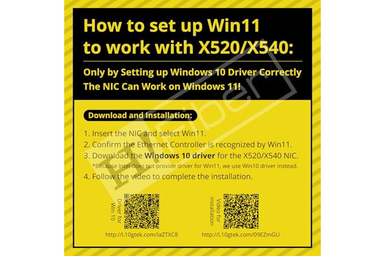 Compatible with Windows Server 2003/ 2008/ 2012, Windows7/8/10*/Visa, Linux, ESX/ESXi*. Storage over Ethernet: iSCSI, FCoE, NFS. (Only by setting up Windows 10 driver correctly the NIC can work on Windows 11! Please see the main picture or video for more detail of installation.)
