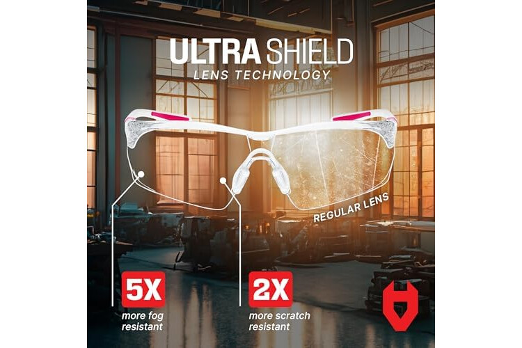 COMFORTABLE AND ADJUSTABLE — These womens safety glasses have extendable arms and an adjustable soft nose pad so you always get the perfect fit. These pink safety glasses also armed with non-slip rubber grips so your safety glasses z87 stay on.