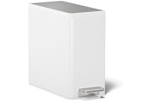 2.5 Gallon Step Trash Can: Ideal for office or bathroom use, this white trash can fits most brands of trash bags