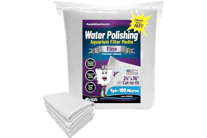 Aquatic Experts Aquarium Polishing Filter Pad, Water Polishing Pad for Aquarium Filters, Filter Floss for Fish Tank Filters, (100 Micron, 24" x 36" - 4 Pack)