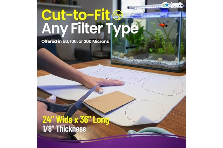 Aquatic Experts Aquarium Polishing Filter Pad, Water Polishing Pad for Aquarium Filters, Filter Floss for Fish Tank Filters, (200 Micron, 24" x 36" - 1 Pack)
