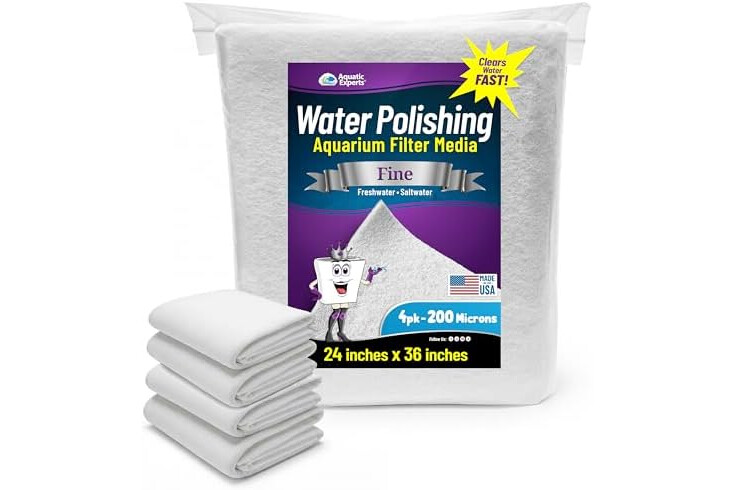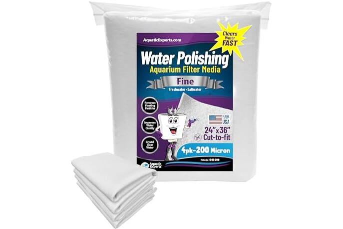 Aquatic Experts Aquarium Polishing Filter Pad, Water Polishing Pad for Aquarium Filters, Filter Floss for Fish Tank Filters, (200 Micron, 24" x 36" - 4 Pack)