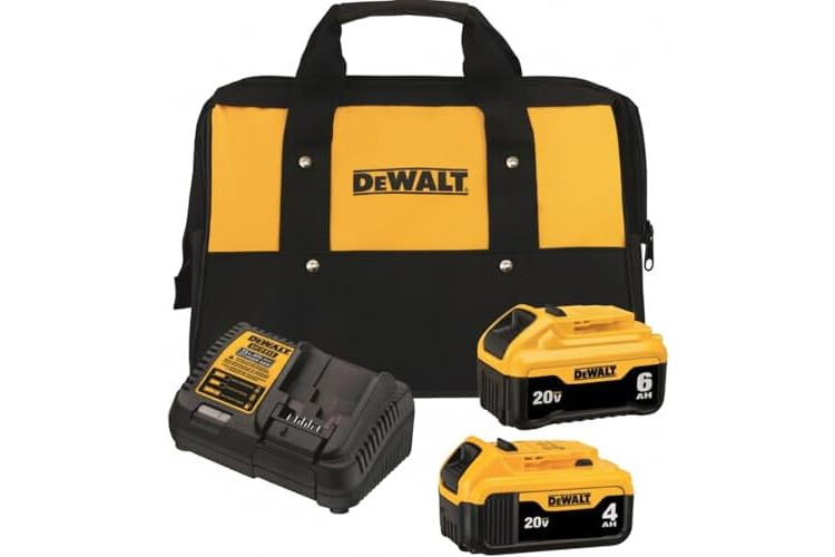 Dewalt 20V MAX Lithium-Ion 6.0Ah and 4.0Ah Battery, Charger Starter Kit and Carrying Bag