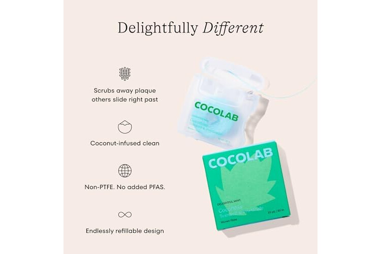 • DESIGNED BY A DENTIST: Tired of flat tape floss, Dr. Chrystle Cu designed Cocofloss to have a textured weave of 500+ interwoven threads that expand like a net to reach and capture cavity-causing plaque, leaving you with an ultraclean, bright smile.