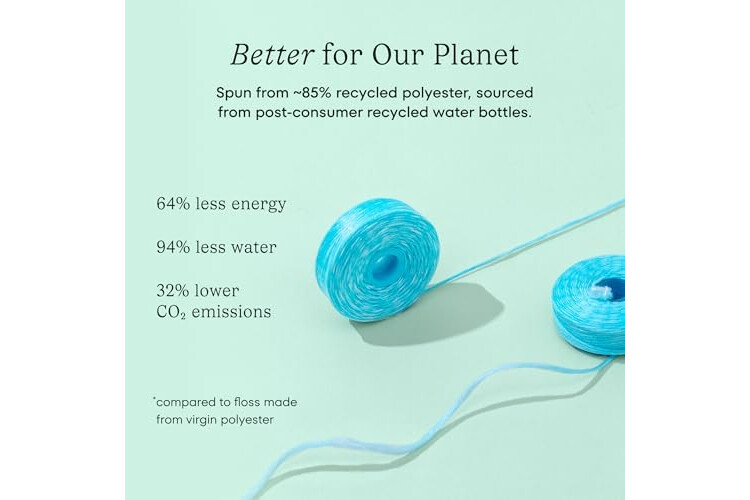 • PLANET-FRIENDLY AND CRUELTY-FREE: Cleanly spun from ~85% recycled water bottles; refillable dispenser; less waste than plastic picks and flossers; free of parabens and sulfates; no irritating flavors; Leaping Bunny–certified cruelty-free.