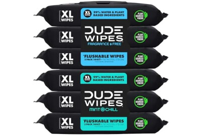 DUDE Wipes - Flushable Wipes for Adults - 6 Pack, 288 Count - Unscented & Mint Chill Scent Included - Extra-Large - Vitamin-E & Aloe - Septic and Sewer Safe
