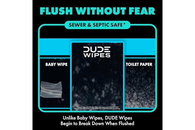 FLUSHABLE & PLANT SOURCED FIBERS: Our wipes are made with plastic free & plant sourced fibers. Unlike baby wipes, DUDE Wipes are sewer and septic-safe. Say goodbye to toilet paper and say hello to DUDE flushable wet wipes for the whole family