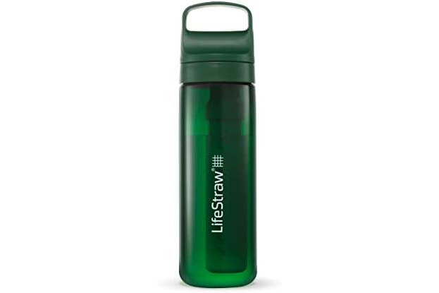 LifeStraw Go Series – BPA-Free Water Filter Bottle for Travel and Everyday use removes Bacteria, parasites and microplastics, Improves Taste, 22oz Terrace Green