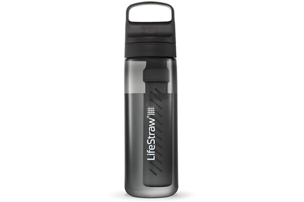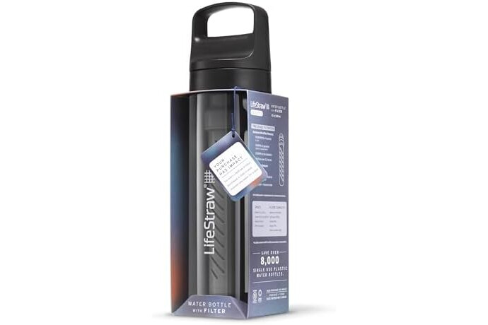 LifeStraw Go Series – BPA-Free Water Filter Bottle for Travel and Everyday use removes Bacteria, parasites and microplastics, Improves Taste, 22oz Nordic Noir