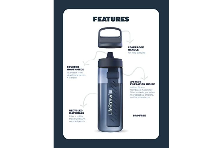 LifeStraw Go Series is the ULTIMATE SIDEKICK. The BPA-Free bottle filters out nasties so you can fill up from airport bathrooms, a tap in Mexico, or a gas station while road-tripping