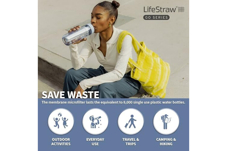LifeStraw Go Series – BPA-Free Water Filter Bottle for Travel and Everyday use removes Bacteria, parasites and microplastics, Improves Taste, 22oz; Clear
