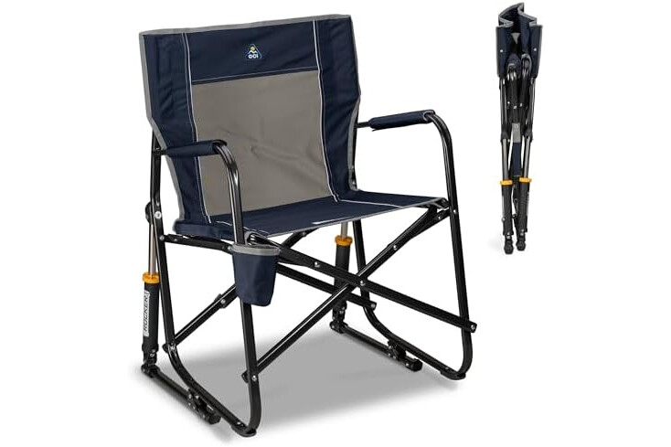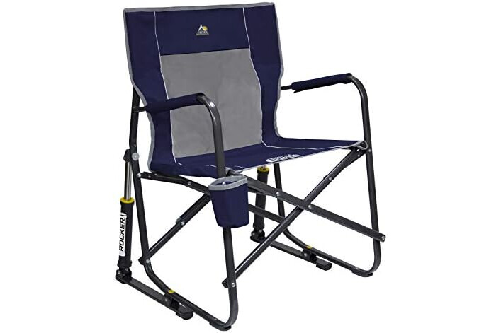 GCI Outdoor Freestyle Rocker Camping Chair | Portable Folding Rocking Chair with Solid, Durable Armrests, Drink Holder & Comfortable Backrest — Indigo Blue