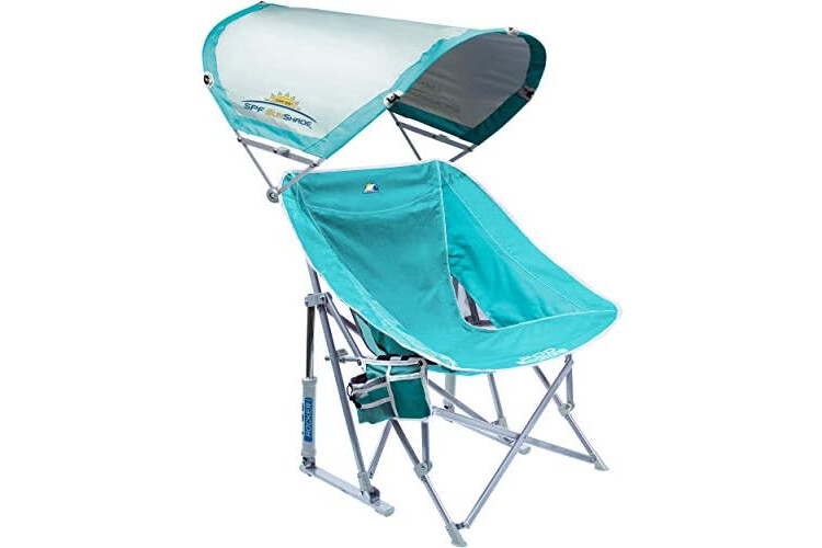 SUN. SURF. SAVOR. Relax by the ocean in the Pod Rocker with SunShade, an adult rocking chair from GCI Outdoor. This beach chair's sling style seat cradles you in comfort while the attached beverage holder keeps cool drinks close by.