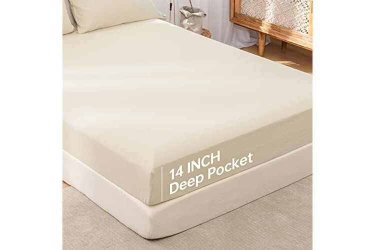 Simple&Opulence Linen Fitted Sheet (1 Piece) - 14 Inch Deep Pocket Mattress Cover Natural Flax Cotton Blended Soft Breathable Bedding - Linen, King Size