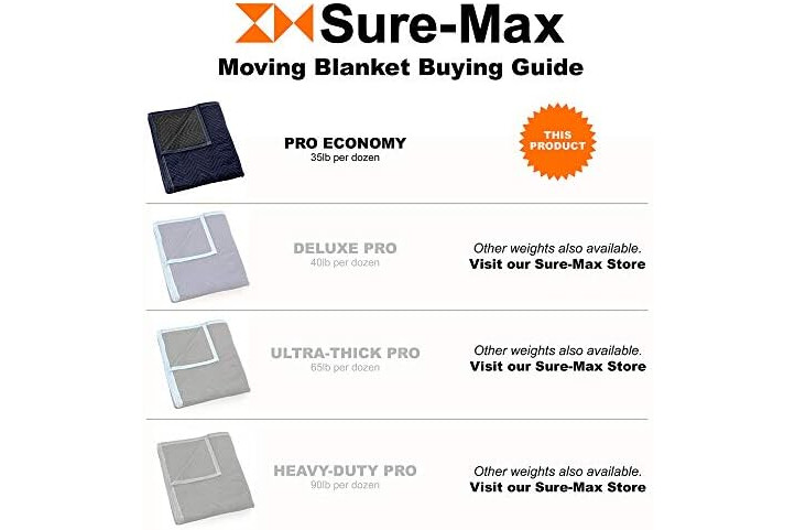 Sure-Max Moving & Packing Blanket - Pro Economy - 80" x 72" (35 lb/dz Weight) - Professional Quilted Shipping Furniture Pad Navy Blue and Black - 1 Blanket