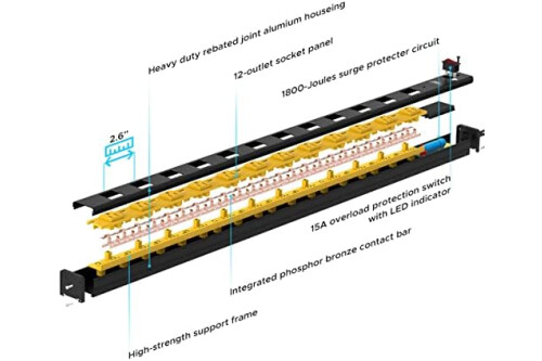 [12 Wide Spced Outles]: 12-outlet, 2.6inch wide-spaced perfact for bulky charger and transformer plug.