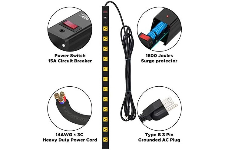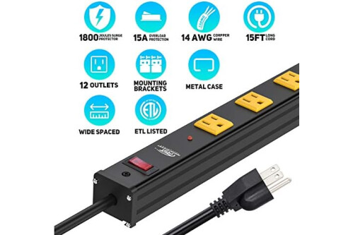[Heavy Duty Features & ETL LISTED]: Sturdy construction with thick aluminum alloy metal housing, flame-retardant plastic panels make the power strip strong enough to withstand shock and heat. ETL certified(US-CA), electrical rating 15 Amp / 125 Volt / 1875Watt
