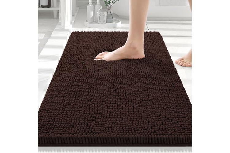 Smiry Luxury Chenille Bathroom Rugs 30x20, Extra Soft and Absorbent Shaggy Bath Mat, Machine Washable, Non-Slip Plush Carpet Runner for Tub, Shower, and Floor, Home Decor Accessories, Brown