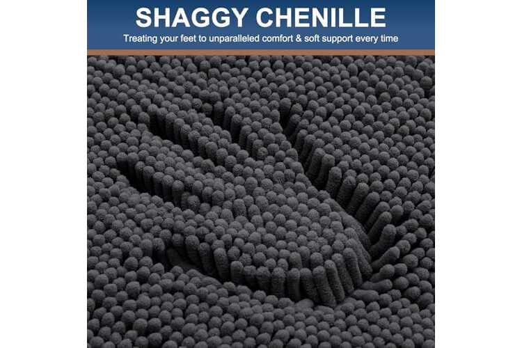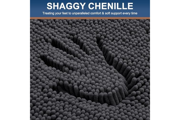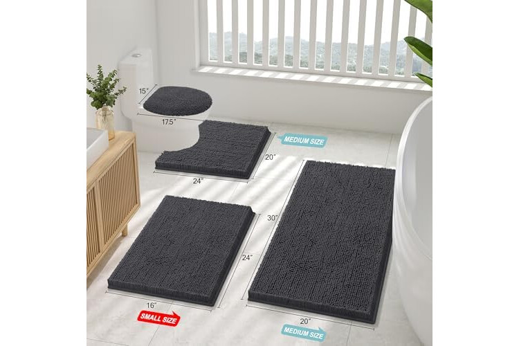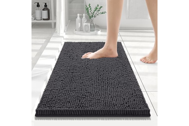 Smiry Luxury Chenille Bathroom Rugs 24x16, Extra Soft and Absorbent Shaggy Bath Mat, Machine Washable, Non-Slip Plush Carpet Runner for Tub, Shower, and Floor, Home Decor Accessories, Charcoal Grey