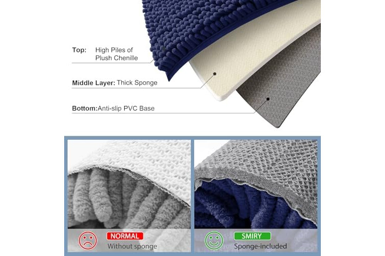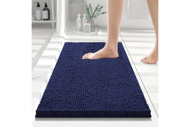 Smiry Luxury Chenille Bathroom Rugs 24x16, Extra Soft and Absorbent Shaggy Bath Mat, Machine Washable, Non-Slip Plush Carpet Runner for Tub, Shower, and Floor, Home Decor Accessories, Navy Blue