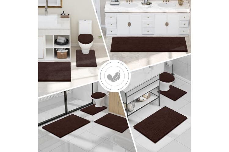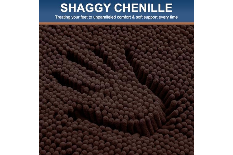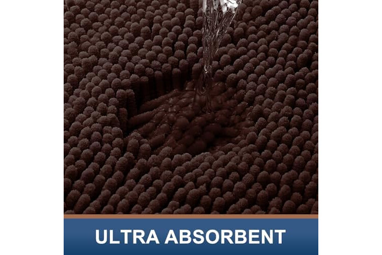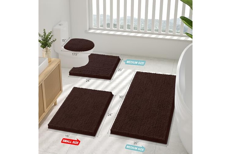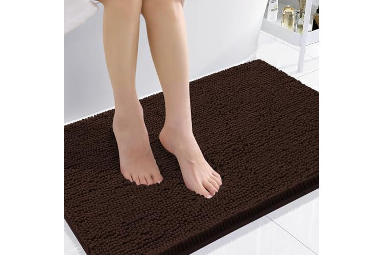 Smiry Luxury Chenille Bathroom Rugs 36x24, Extra Soft and Absorbent Shaggy Bath Mat, Machine Washable, Non-Slip Plush Carpet Runner for Tub, Shower, and Floor, Home Decor Accessories, Brown