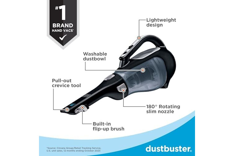 BLACK+DECKER dustbuster 20V Hand Vacuum Cordless Rechargeable, Portable Vacuum for Car and Home, Onboard Flip-Up Brush,Powerful Suction (BDH2000L)