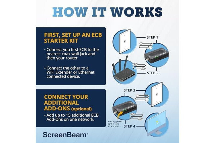 ScreenBeam Bonded MoCA 2.5 Network Adapter for Highest Speed Internet, Ethernet Over Coax - Starter Kit (Model: ECB7250K02)