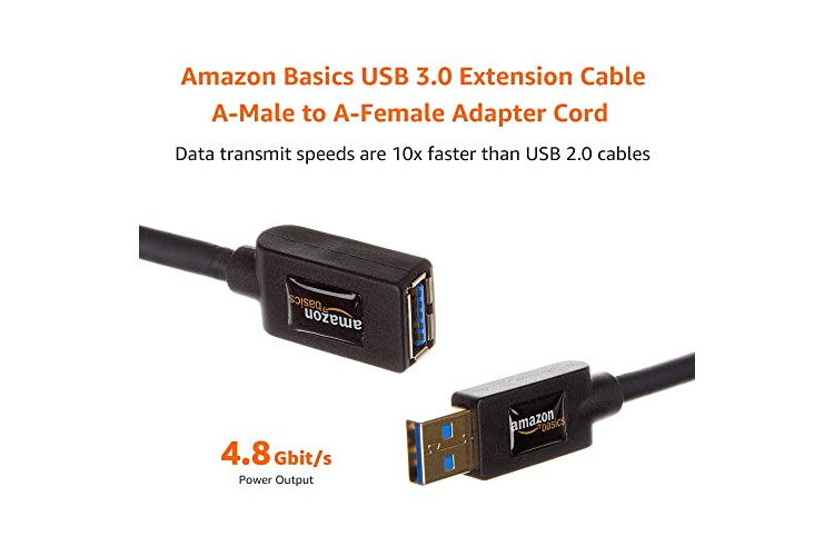 Amazon Basics USB-A 3.0 Extension Cable, 4.8Gbps High-Speed, Male to Female Gold-Plated Connectors, 3.3 Foot, Black