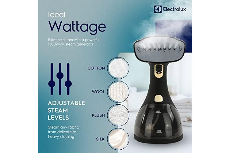 Electrolux Steamer for Clothes, 1500 Watt Portable Handheld Fabric and Garment Steamer with Lint Remover & Fabric Brush, Ultra-Fast Heat Up, 18 Min Continuous Steam for Powerful Wrinkle Remover, Black