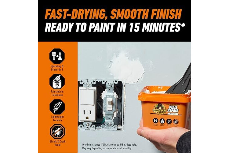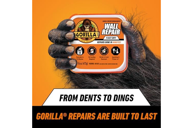 Gorilla Heavy Duty Wall Repair Spackling + Primer is the go- to product for strong, durable repairs on walls, ceilings, cracks and both small and large holes.
