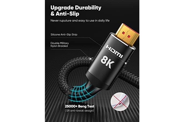 Snowkids 8K HDMI Cable 2.1 2-Pack 6.6FT, Slim 48Gbps High Speed HDMI Braided Cord-4K@120Hz 144Hz 8K@60Hz, HDCP 2.2&2.3, Dynamic HDR,eARC,DTS:X,RTX 3090,Compatible with Roku TV/HDTV/PS5 (Black)