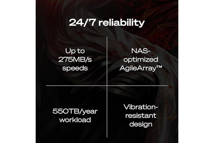 Optimized for NAS: AgileArray with dual-plane balancing, time-limited error recovery (TLER), and rotational vibration (RV) sensors to deliver top RAID performance in multi-bay environments