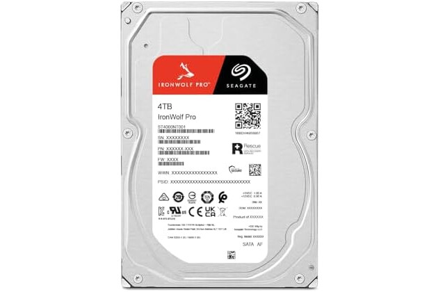 Seagate IronWolf Pro, 4 TB, Enterprise NAS Internal HDD –CMR 3.5 Inch, SATA 6 Gb/s, 7,200 RPM, 256 MB Cache for RAID Network Attached Storage (ST4000NT001)