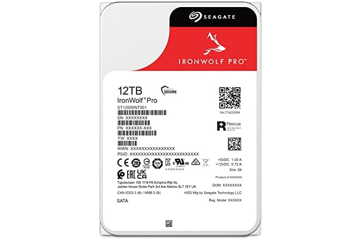 Seagate IronWolf Pro, 12 TB, Enterprise NAS Internal HDD –CMR 3.5 Inch, SATA 6 Gb/s, 7,200 RPM, 256 MB Cache for RAID Network Attached Storage (ST12000NT001)
