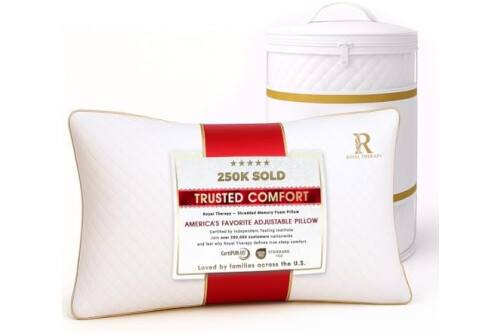 Royal Therapy King Memory Foam Pillows - Shredded Memory Foam Pillow for All Sleep Positions - Medium Firm Pillow with Adjustable Loft - Bamboo-Derived Rayon Cover - CertiPUR-US & Oeko-TEX Certified